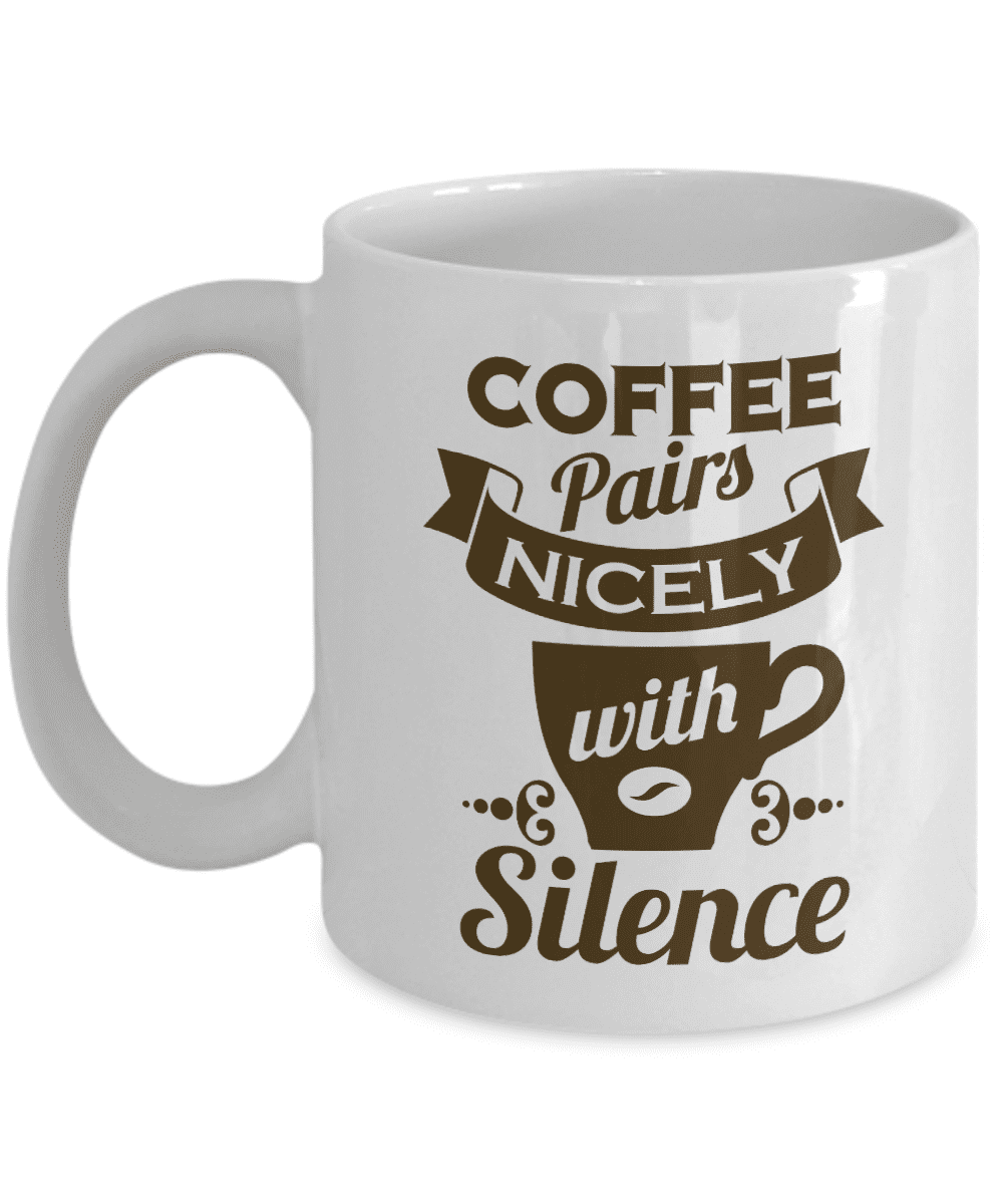 Coffee Pairs Nicely With Silence Quotes Coffee Tea Mug Desk Decor Items Merchandise Work Cup Giftables For A Quiet Person Introvert Wallflower And Men Women Office Coworkers 11oz