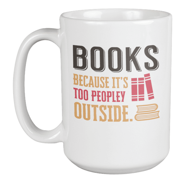Books Because It S Too Peopley Outside Witty Coffee Tea Mug Cup Or Decor 15oz Walmart Com
